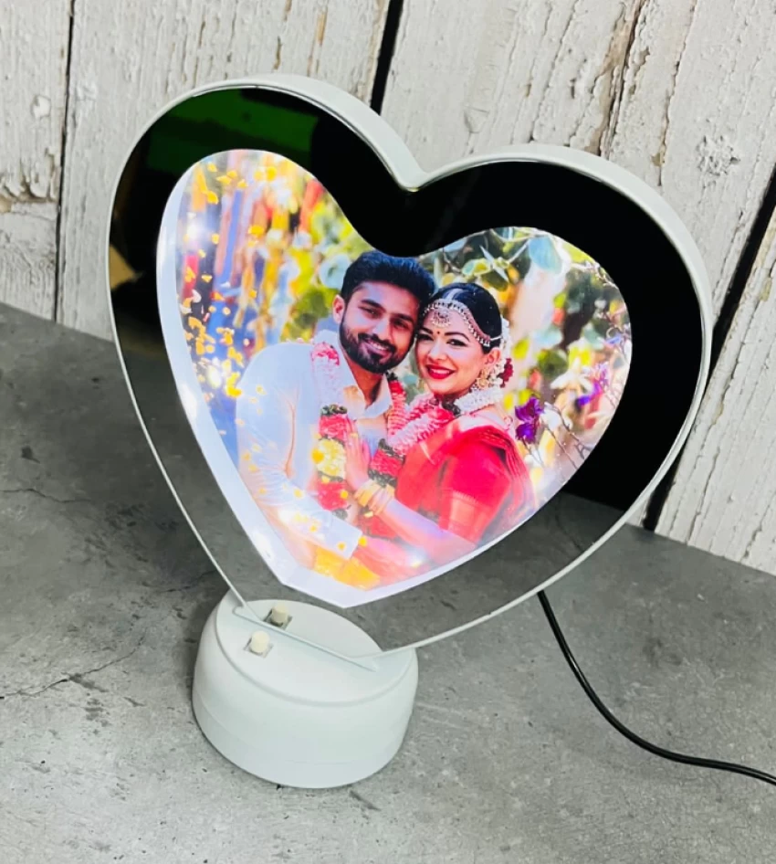 Add a magical touch to your home or gifting experience with the Magic Mirror Heart-Small. This unique piece serves as a looking glass and transforms into a photo frame when illuminated by its built-in LED light, eliminating the need for external lighting. Crafted with a glossy finish, this compact and lightweight mirror is perfect for gifting loved ones or enhancing your home décor. Personalize it with a cherished photo to make it a truly unforgettable keepsake.