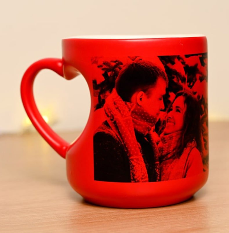Transform your coffee experience with our Magic Mug Heart Handle in sleek Red. This ceramic mug magically reveals your chosen images when filled with hot liquid, making it the perfect gift to brighten special occasions like birthdays, anniversaries, Valentine’s Day, and more.